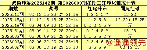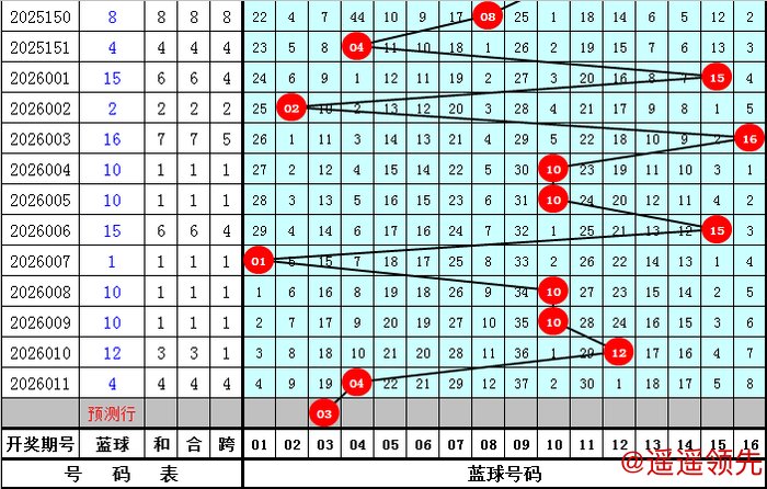 蓝球尾数分析:最近7周星期二开出4个蓝球尾数,重复蓝球尾数明显活跃,本周星期二排除近期已出现的蓝球尾数,注意温冷蓝球尾数回补,关注蓝球03。