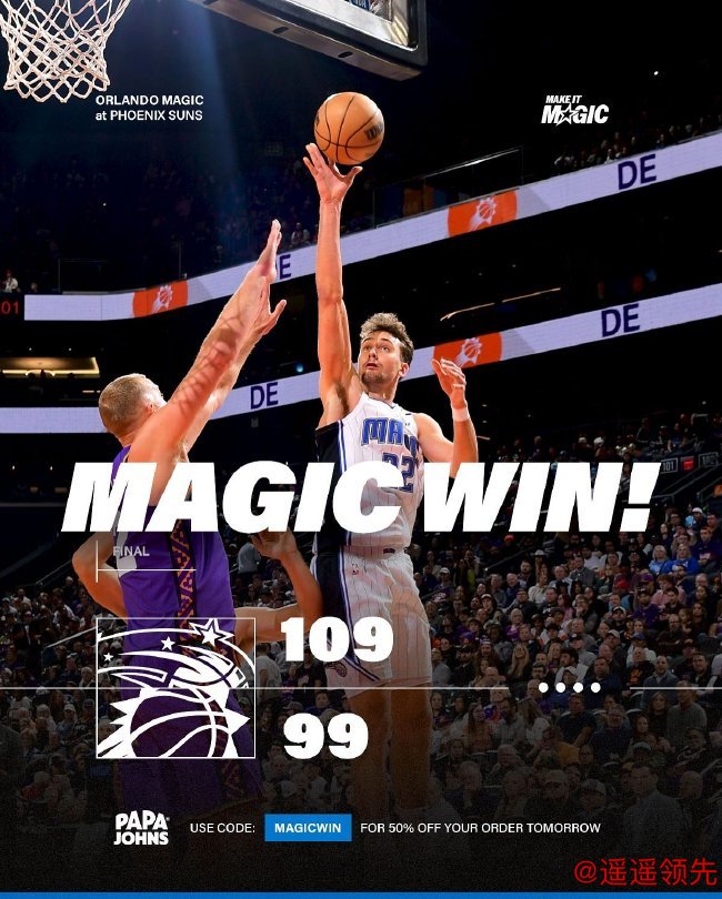 小瓦格纳背靠背砍下至少30+5+5,成为继麦蒂之后首个达成这一成就的球员,在他的率领下魔术取得6连胜继续稳居东部第三。
