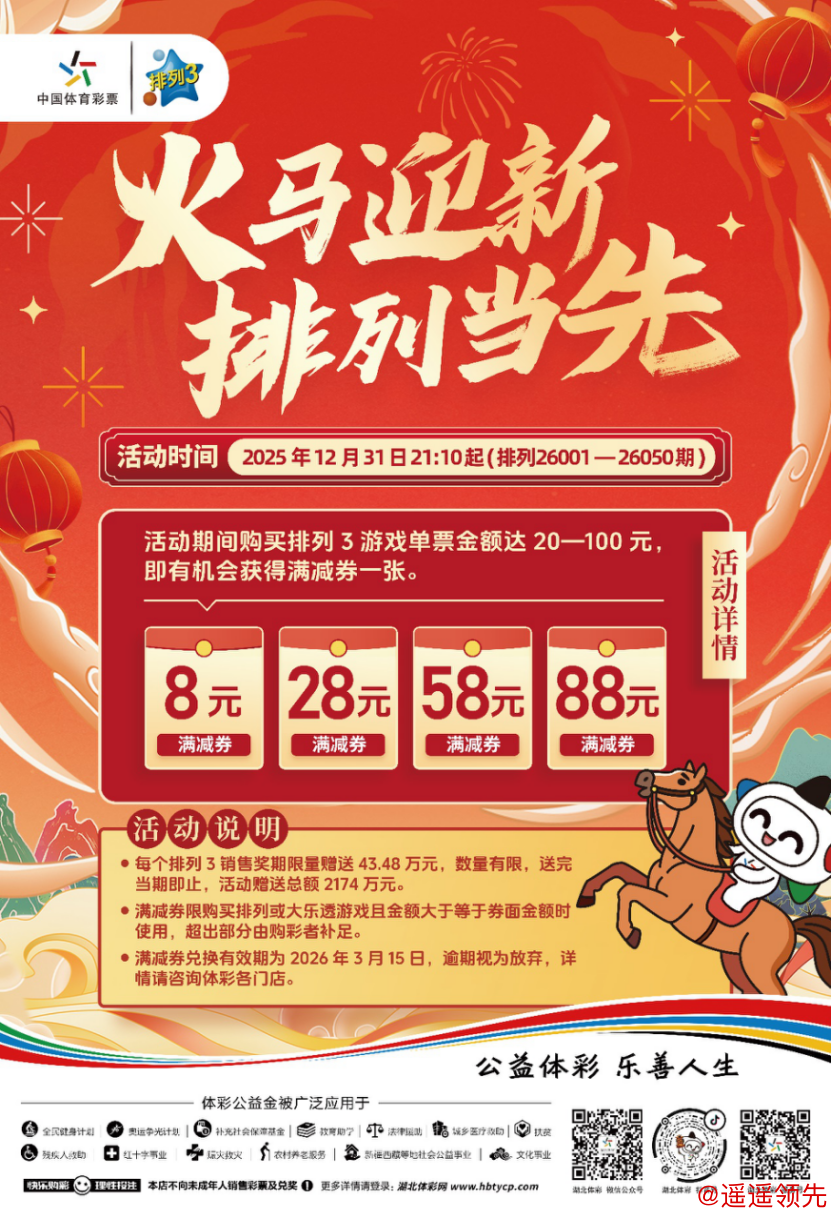 每个排列3销售奖期限量赠送43.48万元满减券,送完当期即止!